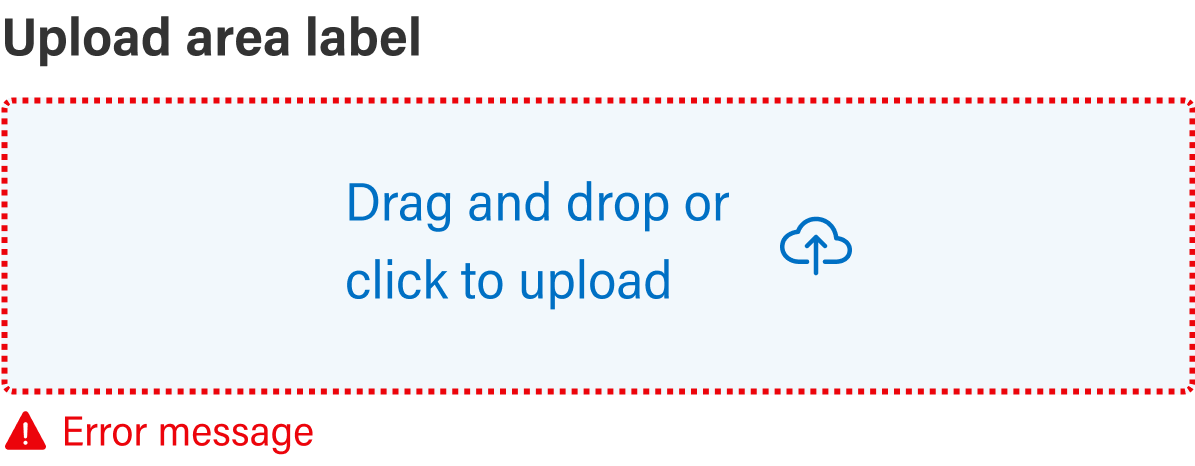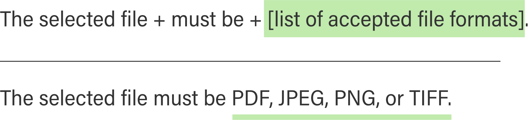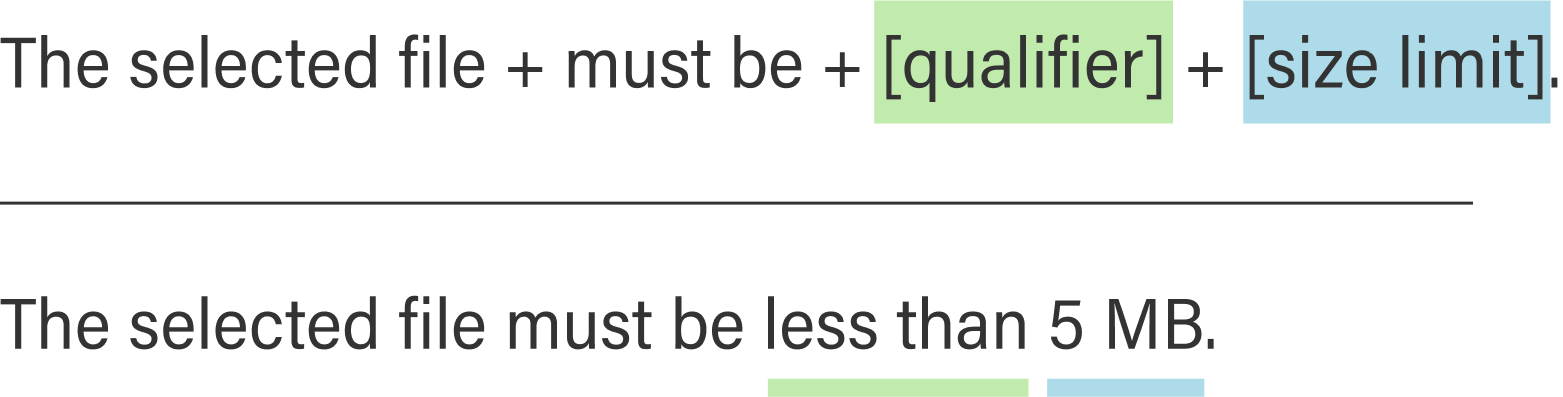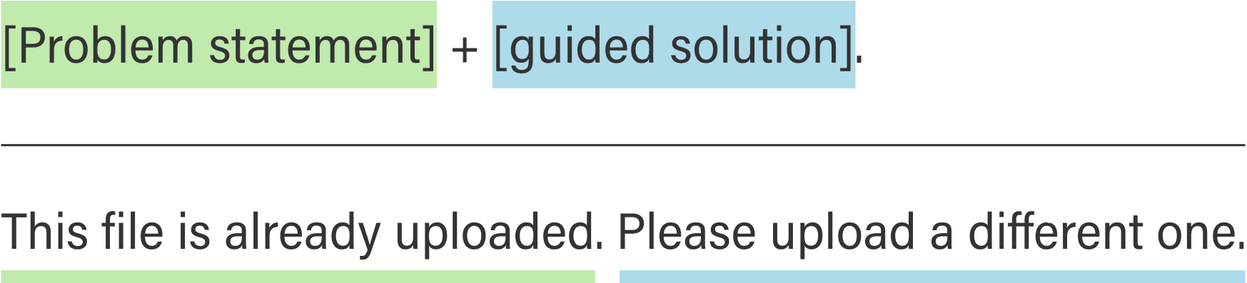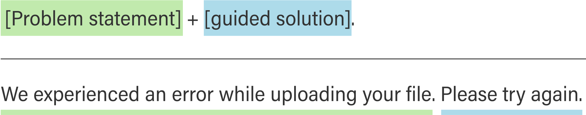 Use humanized tone when stating the problem. In this example, the service accepts the responsibility for the failed upload and eases the frustration that user might feel.
