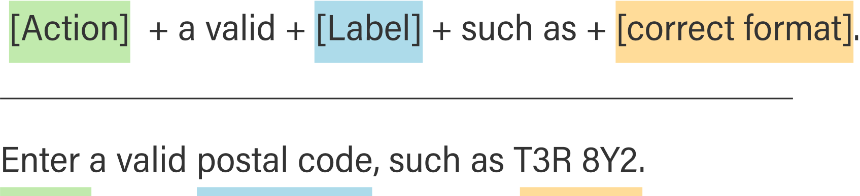 Provide an error without a solution. Frame the error message with a solution, along with an example of a valid input.